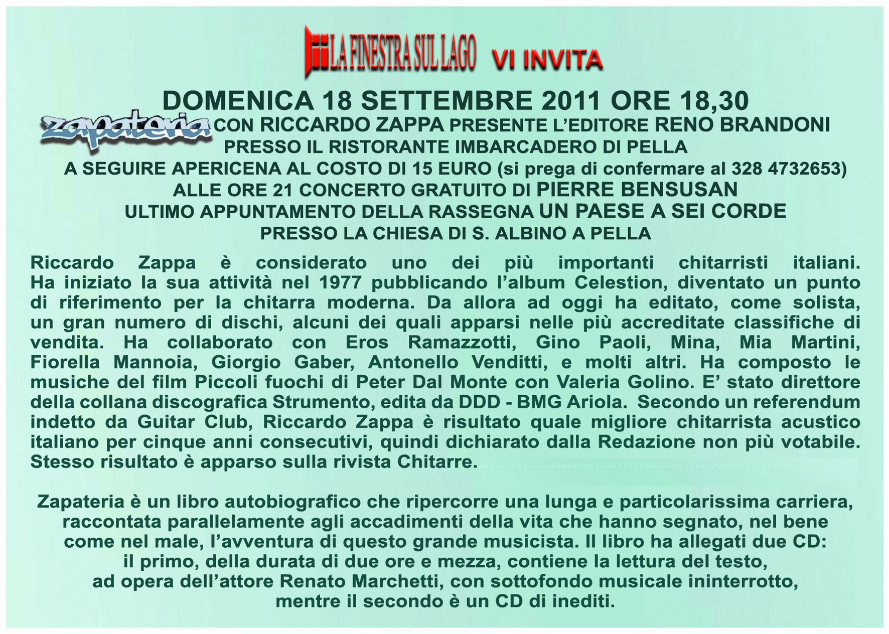 Un evento in più al termine della rassegna: l'incontro con Riccardo Zappa a settembre per la presentazione del suo libro Zapateria