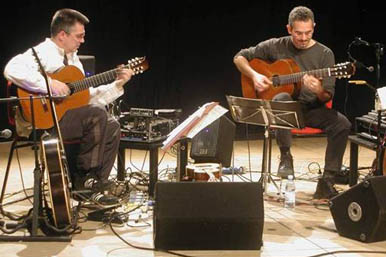 Jogo de Cordas Il Duo è stato invitato dall'organizzazione delle Olimpiadi Invernali Torino 2006 a rappresentare il jazz pedemontano esibendosi al Medals Plaza di Piazza Castello a Torino. E' stato anche recentemente invitato ad aprire il I° Festival di Chitarra acustica e folk in Friuli, al 4° festival Brasiliano di Bologna, alla rassegna internazionale di Lerici 'Chitarre nel Golfo dei Poeti' all'Acoustic Guitar 9th International Meeting 2006 di Sarzana, al X° Festival chitarristico della Valle Ossola, al Sant¹elpidio Jazz Festival 2006 e alla 2° edizione del Rivarolo Guitar Jazz Festival. Questo progetto permette di ascoltare in veste nuova e originale i due artisti, che si presentano con un repertorio che fonde e integra le loro diverse connotazioni stilistiche maturate in esperienze artistiche differenti ma affini. Il loro interesse reciproco per la musica brasiliana, la musica jazz, la melodia mediterranea e i ritmi inusuali, ha permesso questo connubio e la realizzazione di un repertorio in cui la scelta e l¹esecuzione dei brani fa emergere le diverse personalità espressive, sia compositive e di arrangiamento che improvvisative La sonorità del duo è basata sui contrasti degli strumenti impiegati, con l¹abbinamento di sonorità sia acustiche che elettriche. La musica eseguita ha connotazioni mediterranee, jazz e latine e presenta composizioni scritte da Tessarollo e Taufic per due chitarre e alcuni arrangiamenti di melodie di noti compositori tra i quali Gerswhin, Lobo, Parker e Diaz. Il concerto vedrà la presentazione del primo lavoro discografico del Duo : il cd 'Jogo de Cordas', uscito a Maggio per l'etichetta discografica Velut Luna. Note di copertina di Stefano Bollani La chitarra è uno strumento nato prima del pianoforte, questo bisogna riconoscerlo. Non foss¹altro che per questo, i pianisti sono tenuti a portare rispetto ai Maestri della chitarra. Per questo motivo indosso un cappello, unicamente per potermelo poi prosaicamente togliere di fronte a Tessarollo e Taufic che in questo disco invece di scontrarsi si incontrano per creare bella musica. Il contrario esatto di quello che hanno fatto molti musicisti jazz nel passato, che suonavano insieme spesso per il gusto di scoprire chi dei due avrebbe surclassato l' altro. Incredibile, insomma, soprattutto per chi conosce lo smisurato ego che accompagna solitamente la figura del chitarrista...! Che Tessarollo e Taufic vadano così ad inaugurare una tradizione? Speriamo di no, onestamente: difficile ripetere una trovata del genere se non si ha la sensibilità e la voglia di mettersi in discussione dei due che state per ascoltare. SUNO E' di origine preromana, ubicato sull'antica Via Francigena. Da visitare la Chiesa di S. Genesio, quella della Madonna della Neve con affreschi di fine '400 e l'Oratorio di S.Pietro dall'insolita pianta esagonale. Situato nella zona delle Colline Novaresi, vi si producono rinomati vini bianchi e rossi (da non perdere il "Môt Ziflon"!), oltre a gustosi salumi, deliziosa pasticceria e un delicato miele. Curiosità: a Suno esiste ed è possibile visitare un Osservatorio Astronomico costruito nel 1975, con telescopio riflettore del diametro di 40 cm. |