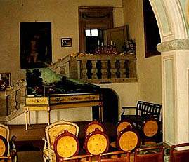ORTA (Isola di San Giulio) sala Tallone La Sala "Eleonora Tallone" si trova all'interno della settecentesca villa Tallone sull'isola di San Giulio. Fu Cesare Augusto Tallone, geniale costruttore di pianoforti, a volerla così come la si può vedere oggi, reimpostando la precedente costruzione, a sua volte riadattamento di parte dell'antico seminario. La sala è un naturale scrigno per il suono. È il luogo ove lo spirito si rinfranca e dove il trascorso naturalmente rivive.