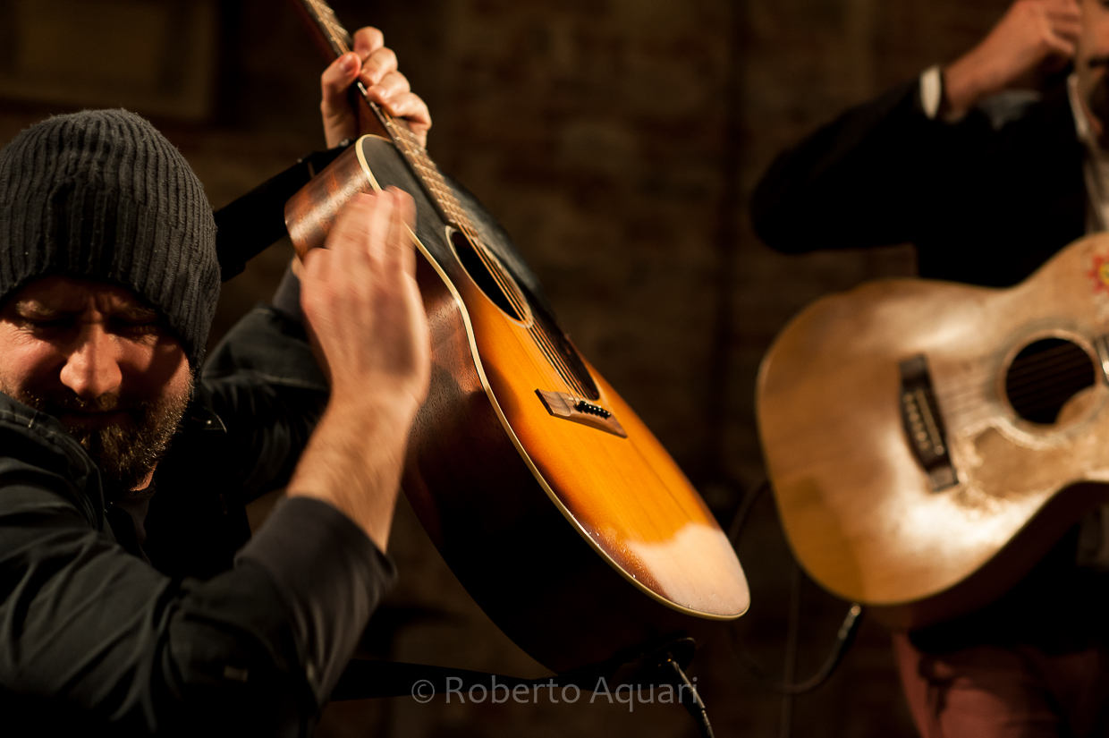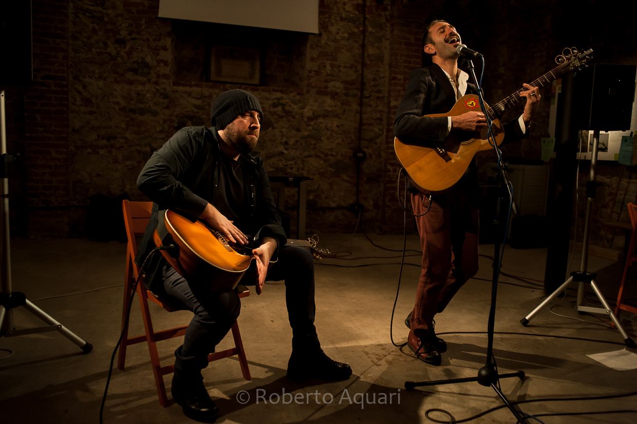 Al termine di una seguitissima conferenza stampa di presentazione del calendario e delle nuove iniziative del festival, il Museo del Baco da Seta di Cressa ha accolto una festa che ha dato il via alla rassegna insieme a Luca Pirozzi e Leonardo Marcucci, grandi chitarristi e spassosi intrattenitori. Una vera festa di musica e risate che ha coinvolto il numeroso pubblico con grandi classici rivisitati dalla irresistibile bravura dei nostri musicisti, inframmezzati da un pezzo di Luca Pirozzi che sembra scritto apposta per il nostro Mauro e proprio a lui dedicato stasera: I Capelli. Divertentissima! Tra lo swing italiano di Conosci Mia Cugina, il Celentano di Grazie, Prego Scusi, Tornerò e il Carosone di O’ Russo e A’ Rossa, ecco infilarsi i più esotici ritmi di Qui Sas, Libertango e Son Figlio Unico, nella doppia versione, italiana e l’originale brasiliana. Sempre con quell’aria scanzonata, sempre con quella voglia di giocare col pubblico, farlo ridere e cantare. Sempre con quel divertimento che voleva quasi far passare in secondo piano la grande bravura dei due chitarristi. Sempre con Luca Pirozzi a condurre il gioco, a chiacchierare, raccontare aneddoti, mentre Leonardo Marcucci sembrava limitarsi a seguirlo, complice di quello spasso, con la sua cuffia sempre calata su quegli occhi azzurri sornioni che sapevano interpretare e anticipare ogni nota dell’amico con uno straordinario virtuosismo senza parole. Fra i due basta uno sguardo e la musica, cambia, si rimescola e si trasforma. Via con Me, di Paolo Conte, ha acquistato un ritmo caraibico e scatenato, mentre i presenti quasi ballavano sulle sedie trascinati dalle mani rapide e sapienti dei due chitarristi, che l’hanno trasformata in una incredibile Tamacun. E, un attimo dopo, giocando e giocando, eccola diventare Parole Parole di Mina. Il concerto è arrivato al termine, ma applausi e risate reclamavano almeno due bis. Besame Mucho e Mediterranean Sundance potevano sembrare dei titoli gigioni, ma non per Luca Pirozzi e Leonardo Marcucci che, con la loro leggerezza e grande bravura, ne hanno fatto un finale di grande divertimento, sempre a modo loro, mescolandoli con coriandoli musicali presi qua e là, così, per giocare ancora un po’, come se non ci fosse niente di più importante della gioia del pubblico.