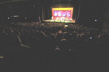 Bellissima la trottola galattica dipinta da Sergio Bianco a fare da sfondo ai quattro musicisti, belle le luci (molto colorate) e buonissimo il suono del PA della SR. Un bravo a chi ha messo le pecette sui led azzurri delle casse che danno veramente fastidio in certi momenti. Mi permetto solo un appunto al Maestro dei Suoni, il mitico Lallo dalla cui infinita sapienza ho cercato di rubare qualcosina: nelle prime file il suono della chitarra di Beppe era un po' "indietro" e negli unisono con il violino restava un cicinìn "sotto". So cosa mi risponderebbe il Maestro: "Ahò, ma te sei fatto un giro ner teatro a sentì da le antre parti? Nun rompe, pischè..." Vero, non ho fatto il giro. Eh, i Maestri....