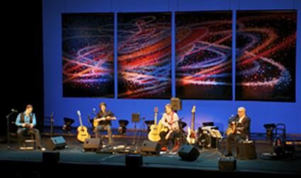 Emozione pura. L'Acoustic Night numero 12 ci ha regalato dei momenti di grande spettacolo. Sì, perché l'iniziativa che Beppe Gambetta e Federica Calvino Prina organizzano ogni anno con un sacco di impegno, intelligenza e dedizione non è solo un concerto di alta classe, ma è questo soprattutto: spettacolo, come pochi se ne vedono sui palchi italiani. Ogni anno nuovi musicisti (e che musicisti!) ai quali Beppe, con un raro senso della sinergia, offre spazi per deliziarci, con una capacità e un senso della collaborazione davvero unici. Beppe si mette al sevizio degli ospiti e usa il suo formidabile talento per esaltarne le qualità musicali e umane. Questa volta Beppe si esibisce perfino al basso elettrico per accompagnare James Keelaghan, cantautore raffinatissimo e sensibilissimo, dall'aspetto di un insegnante di materie tecniche di un ITIS di provincia, ma che maneggia la materia musicale e del testo in maniera impareggiabile, con una voce molto "canadese". Appunto. Perché il Canada multiculturale, francofono e anglofono, è il tema della serata. E allora largo anche alle tradizionali percussioni con i piedi (incredibili!) dei due "Québecquoise" (scritto giusto?) Eric Beaudry a chitarra, bouzouki irlandese e canto, e André Brunet che alterna violino e canto a gag molto riuscite.