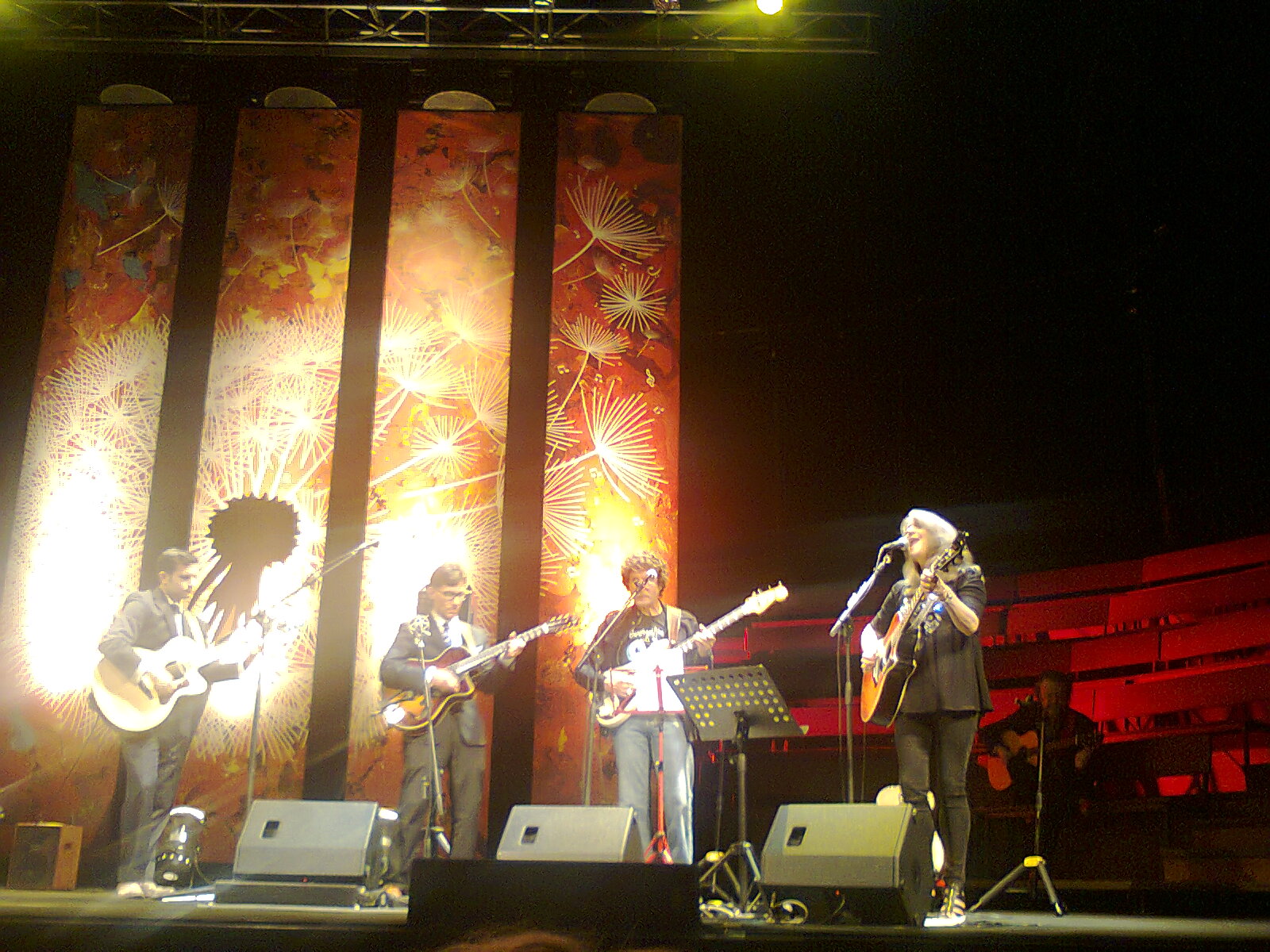 E sul lato destro del palco eccola lì, una regina della musica country, che partita dal West Virgina delle miniere di carbone dove tanti italiani hanno lavorato e sofferto, è giunta a Nashville da dove con la sua voce ha incantato tutta l'America: Kathy Mattea. Ho visto i più trucidi e tatuati camionisti piangere come vitelli ascoltando la sua "Eighteen Wheels and a Dozen Roses" (non è vero che li ho visti ma sono sicuro che è successo). C'è tra gli aficionàdos di Un Paese a Sei Corde chi negli anni ottanta si sintonizzava nottetempo sulla radio per le truppe americane in Europa per ascoltarla. Ho sentito ieri sera la Signora Mattea esclamare "How I love this job!" agli a solo formidabili che Beppe, Frank e Vinny pennellavano sotto la sua voce. Che bello! Che piacere ascoltare il "suo" country, non quello banale dei vestiti con le frange, gli stivaletti a tacco alto e gli "stetson" bianchi a tesa larga, ma quello ricco di spirito vero: storie se vuoi semplici, sentimenti semplici, ma VERI. E Lei, con la semplicità che solo una autentica regina può permettersi di esibire, ci ha stregato. Non la voce di una Callas o la tecnica di una Tebaldi, ma avercene come la sua… e poi per il country certe cose non sono necessarie. Con semplicità il principe consorte John Vezner (niente da fare, non può passare per italo-americano) l'accompagna questa volta per l'occasione al basso, anche se il suo mestiere vero è quello di vincere Grammy con le canzoni che compone.