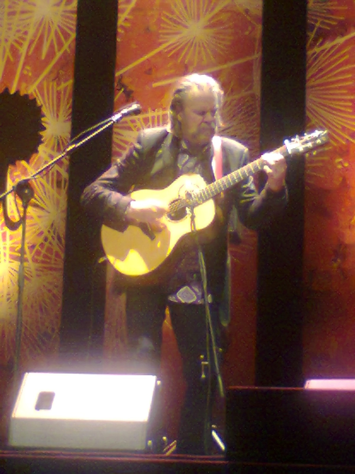 Per ultimo l'ormai "Venerato Maestro " (copyright Arbasino Alberto): Beppe Gambetta. Si dice comunemente che con l'età la tecnica non supporta più, che vi si sopperisce con il "sentimento", il "gusto", la "magia"... Non è il caso di Beppe Gambetta: il suo motore non perde un colpo, sono stato in attentissimo ascolto per tutto il concerto, non ce la fa proprio a stare sotto il suo standard tecnico, che quanto elevato sia chi lo conosce sa. E il Gambetta in più, come un nobilissimo Nebbiolo di grande annata, ci regala nel tempo sempre nuove sensazioni, un gusto vieppiù raffinato, una magia che sorprende. Grazie Beppe, per lo spettacolo che ci avete offerto, per quel trascinante secondo bis a velocità non omologabile, per la raffinatezza e la semplicità con la quale sai metterti al servizio dei tuoi ospiti e dello spettacolo. Lidia al mio fianco saltava come una molla con espressione estatica pregustando il tuo concerto a Un Paese a Sei Corde. Ti aspettiamo. E aspettiamo con ansia il tuo nuovo cd con Tony McManus.